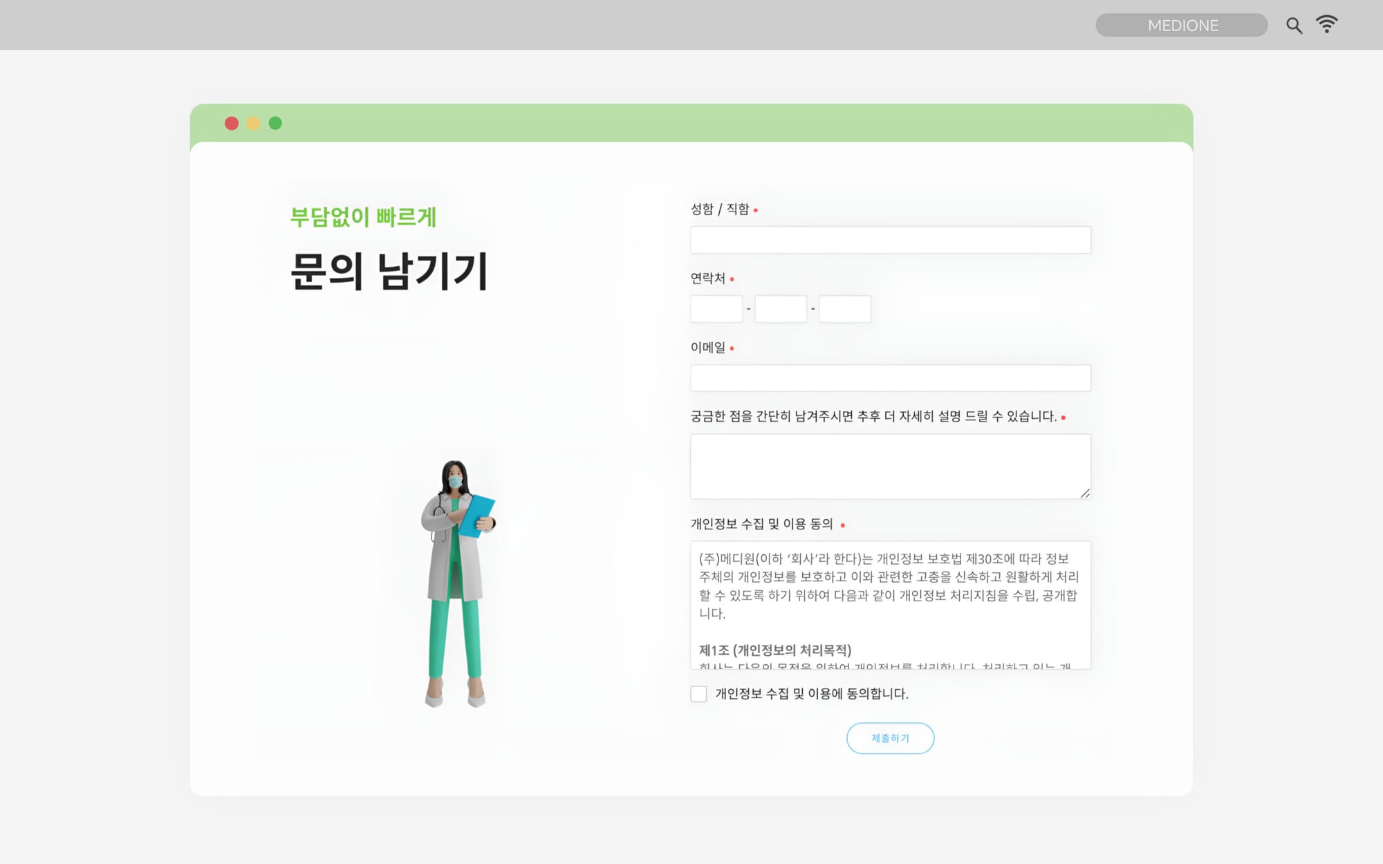 상담 신청은 [🔗 메디원 홈페이지] `문의하기`를 통해 요청하거나, 홈페이지 오른쪽 아래에 있는 채팅 문의 버튼을 눌러 진행할 수 있어요. 상담 요청이 접수되면 메디원의 전문가들이 최대한 빠르게 개별 연락을 드린답니다. 검사실 운영에 관한 궁금증이라면 어떤 것이든 좋아요! 메디원에게 편하게 문의를 남겨주세요.