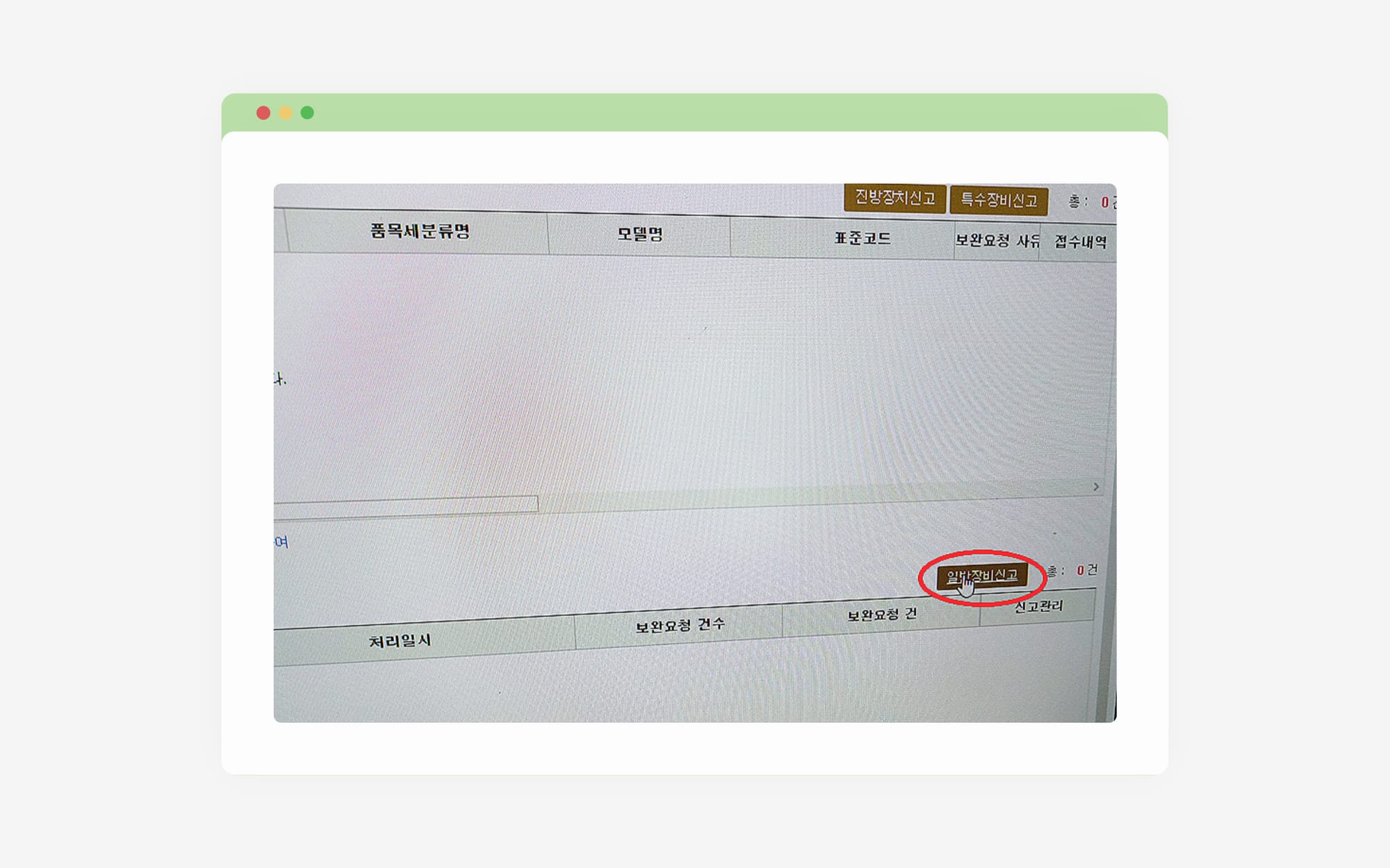 - 화면 우측의 [일반장비신고] 버튼을 클릭해 주세요.