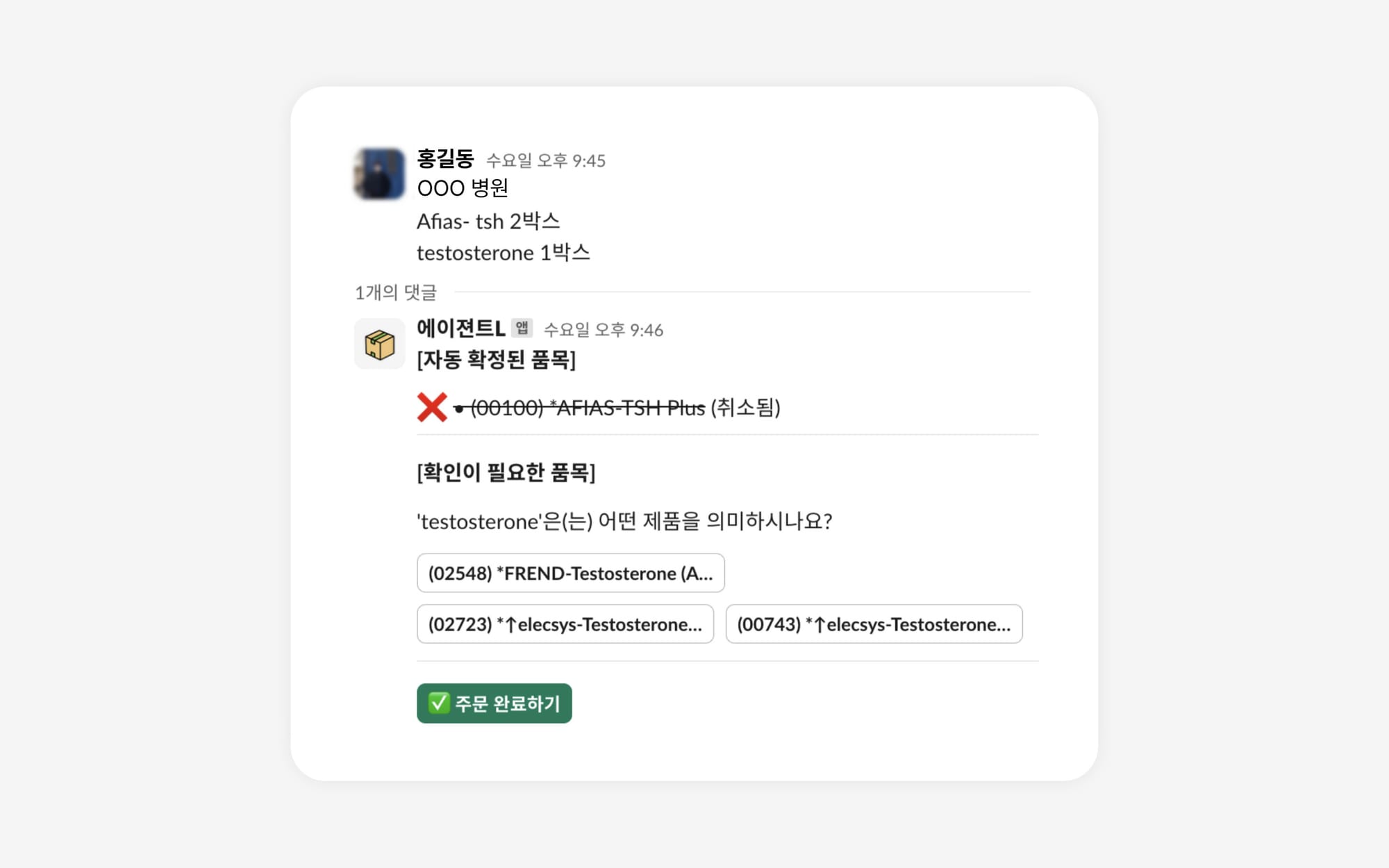메디원의 AI 주문 챗봇이 똑똑하게 일하기 위해서는, 의료 현장에서 쓰이는 용어와 상품명을 정확하게 매칭하고 분류하는 로직이 제대로 작동해야 했어요.